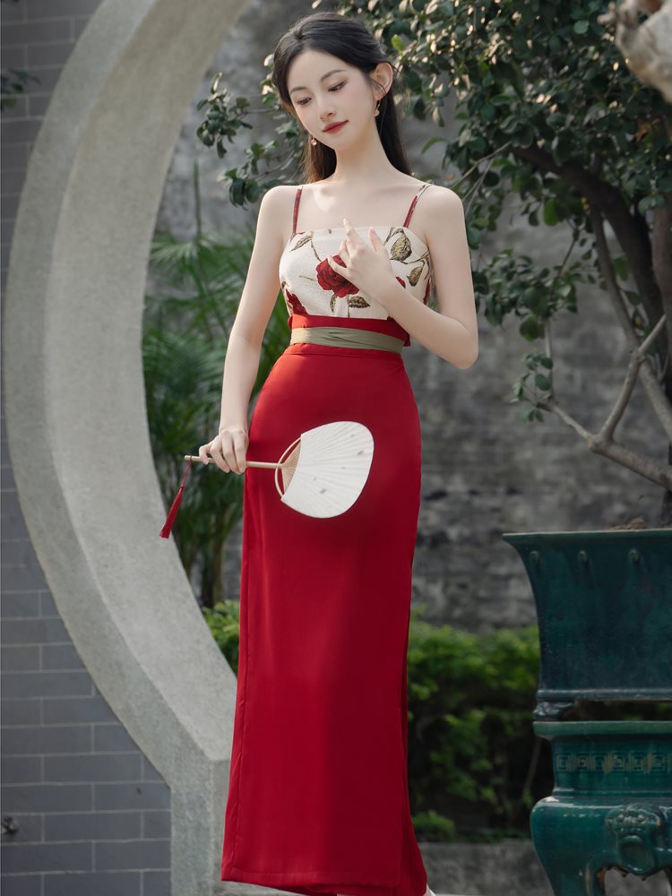 | nameOriginal | Can wear to work improved Chinese clothing red horse-faced skirt suit women summer Chinese style Chinese element dress super fairy |