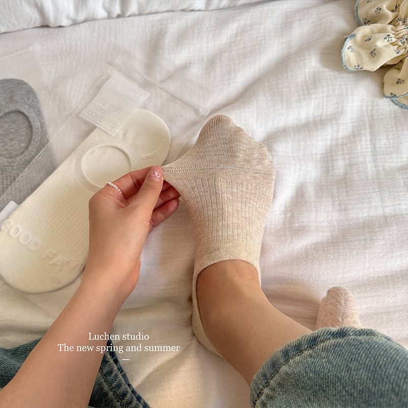 | nameOriginal | Candy color boneless boat socks women's shallow mouth invisible spring and summer new striped basic socks women's non-slip heel |