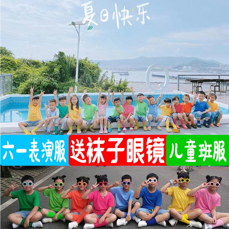 Candy Color Children's Opening Activities Parent-Child Short-Sleeved Kindergarten Primary School Students' Group Class Clothes
