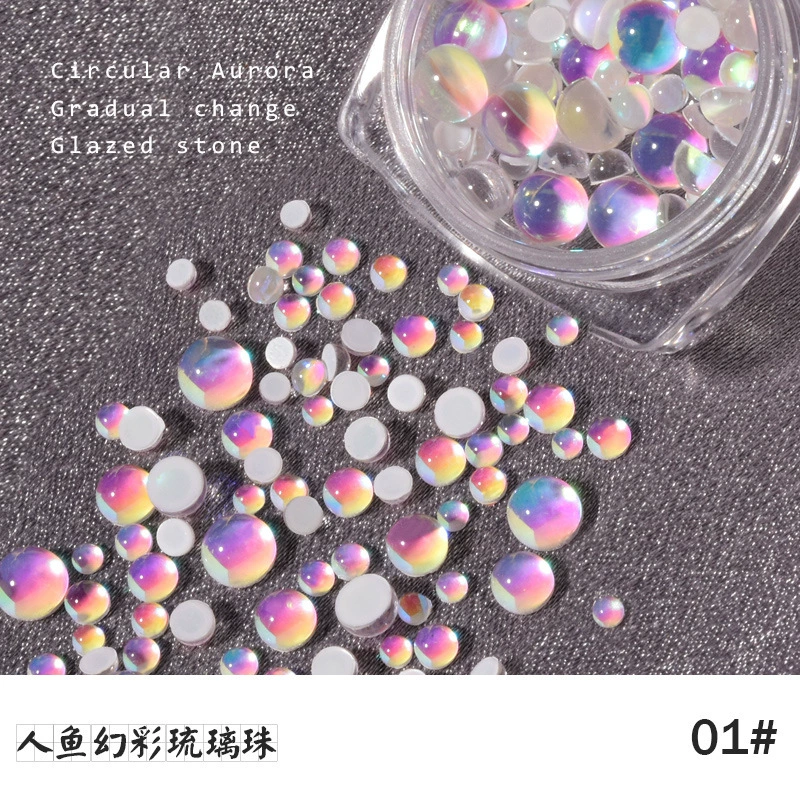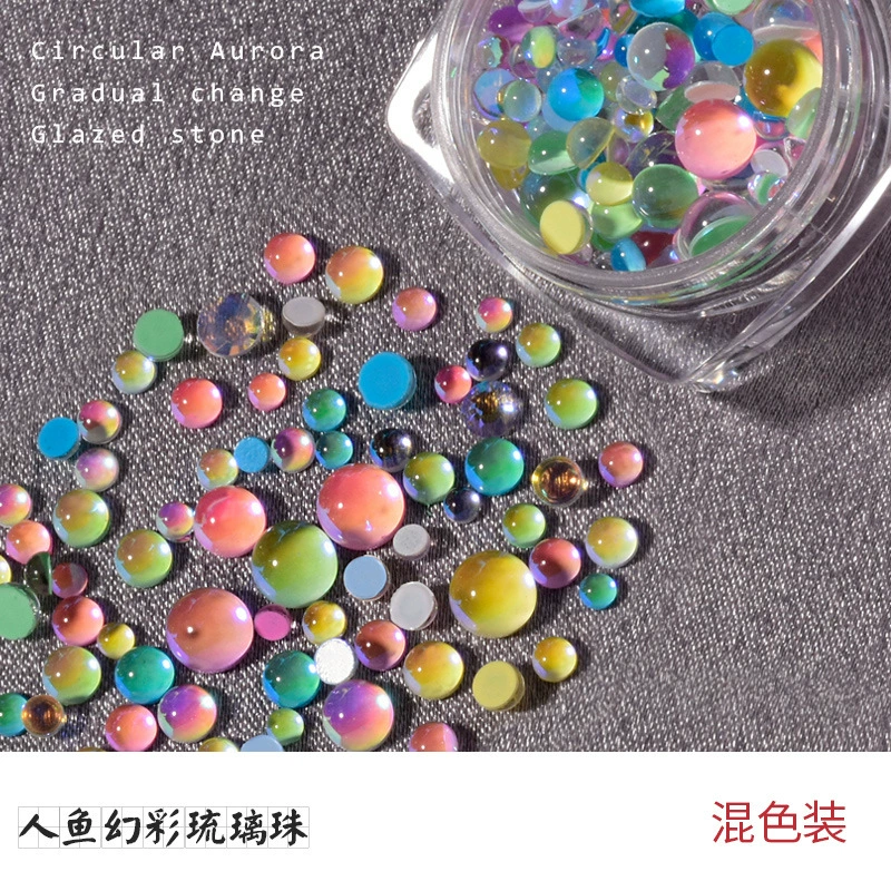 | nameOriginal | Candy Color Mermaid Round Glass Mixed Nail Art Accessories |