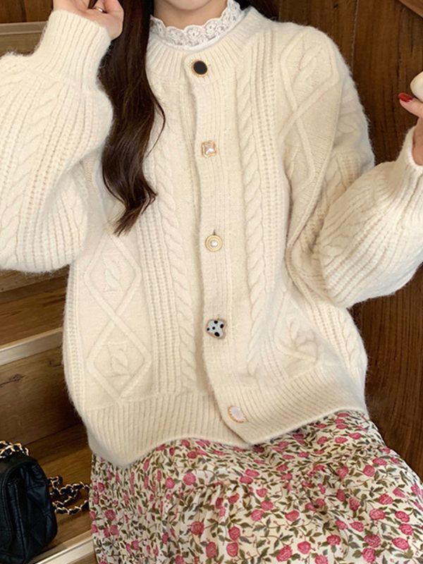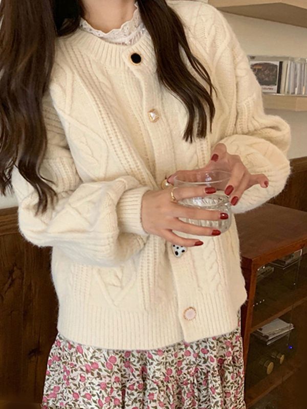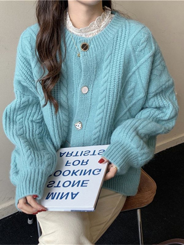 Candy color sweet gentle style round neck design button twist sweater autumn and winter New knitwear for women