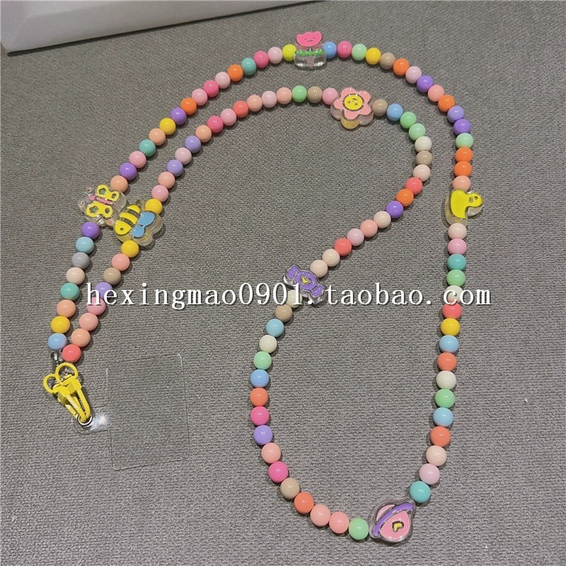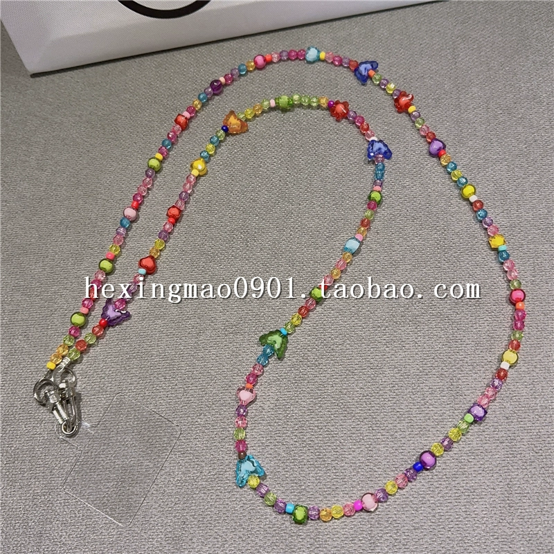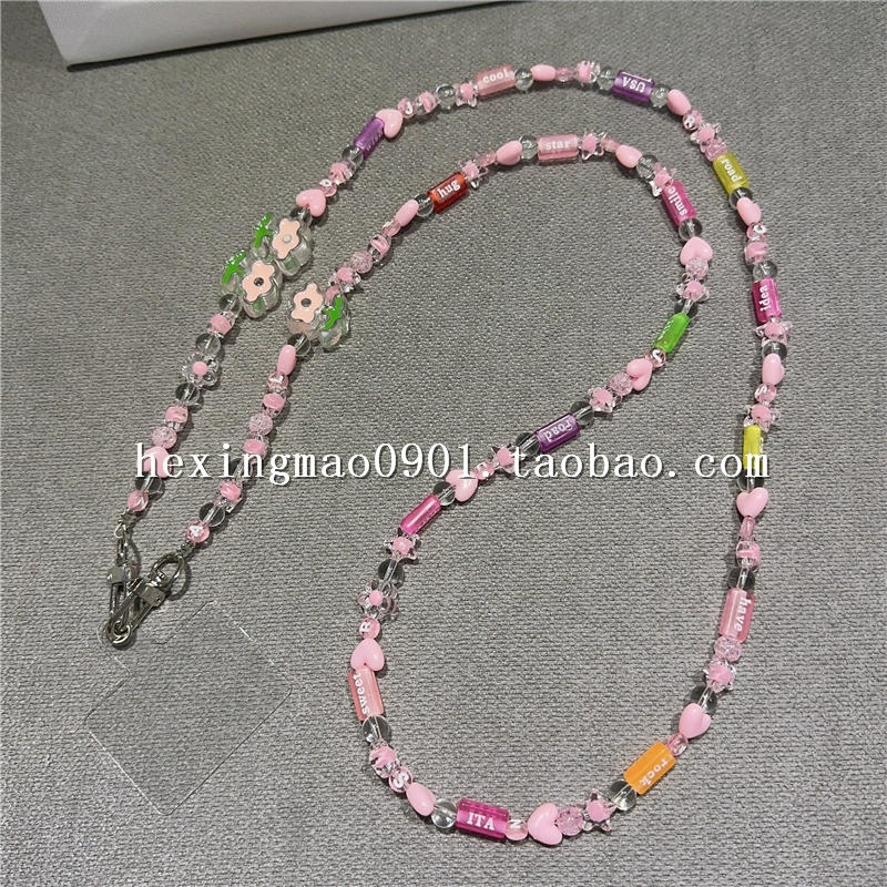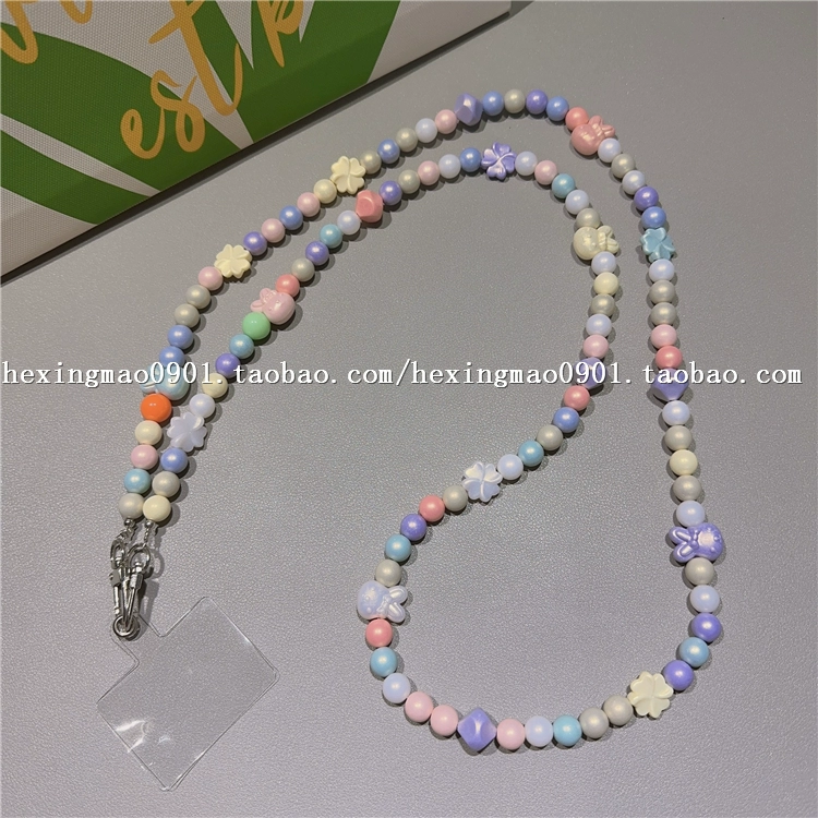 | nameOriginal | Candy-colored flower small round beads beads mobile phone chain pendant creative clip mobile phone lanyard cross-body cross-back pendant long |