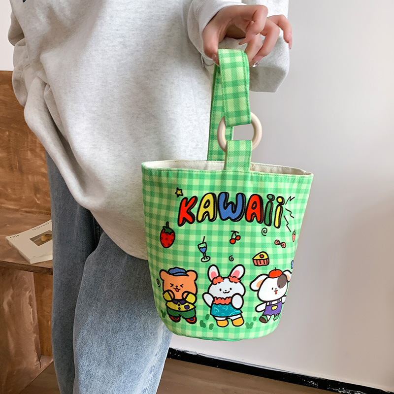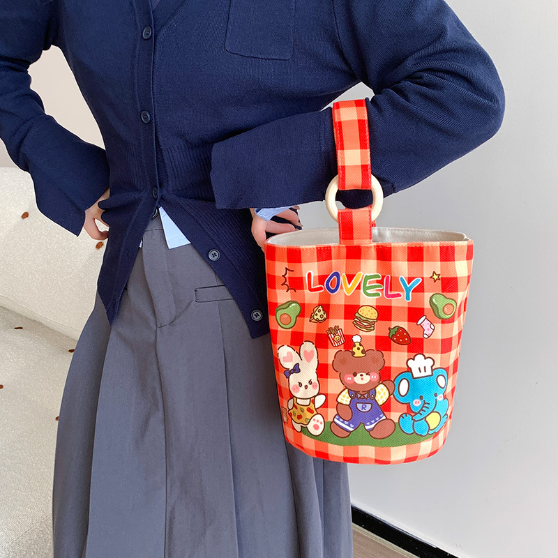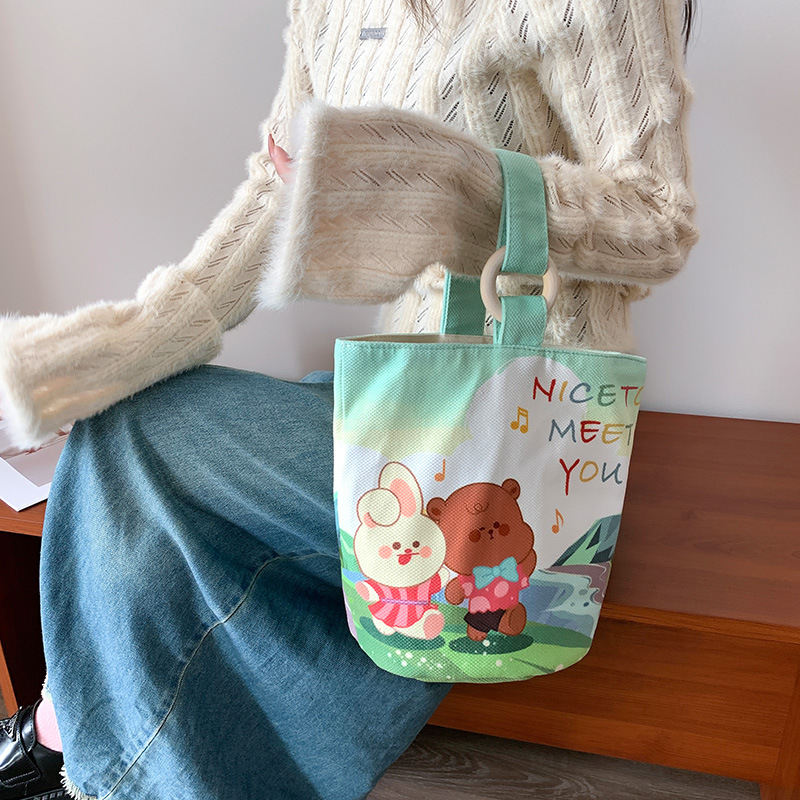 Canvas bag women’s large-capacity handbag bucket bag 2024 new double-layer fashion commuter lunch box bag a generation of hair