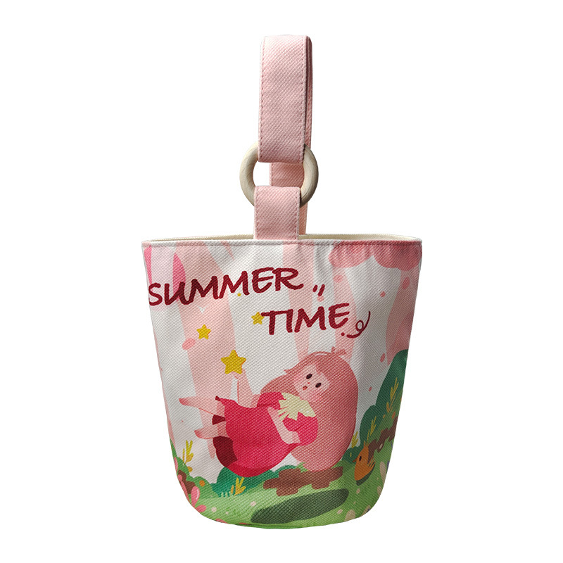 Canvas bag women's large-capacity handbag bucket bag 2024 new double-layer fashion commuter lunch box bag a generation of hair