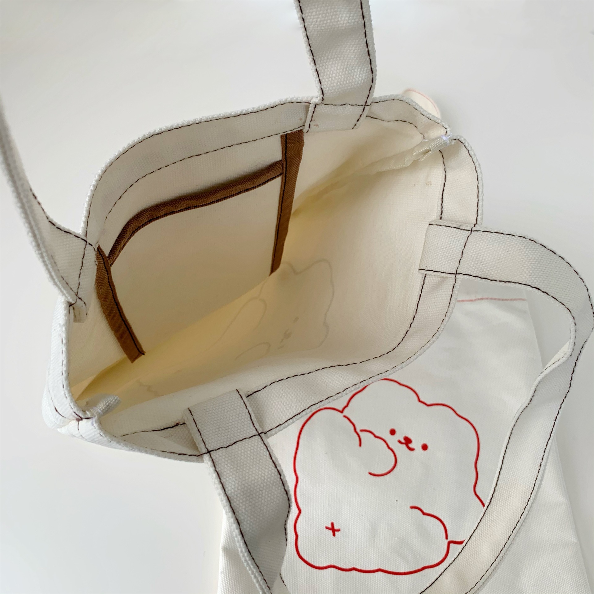 Canvas Bear handbag cute cotton storage shoulder bag simple student canvas pouch