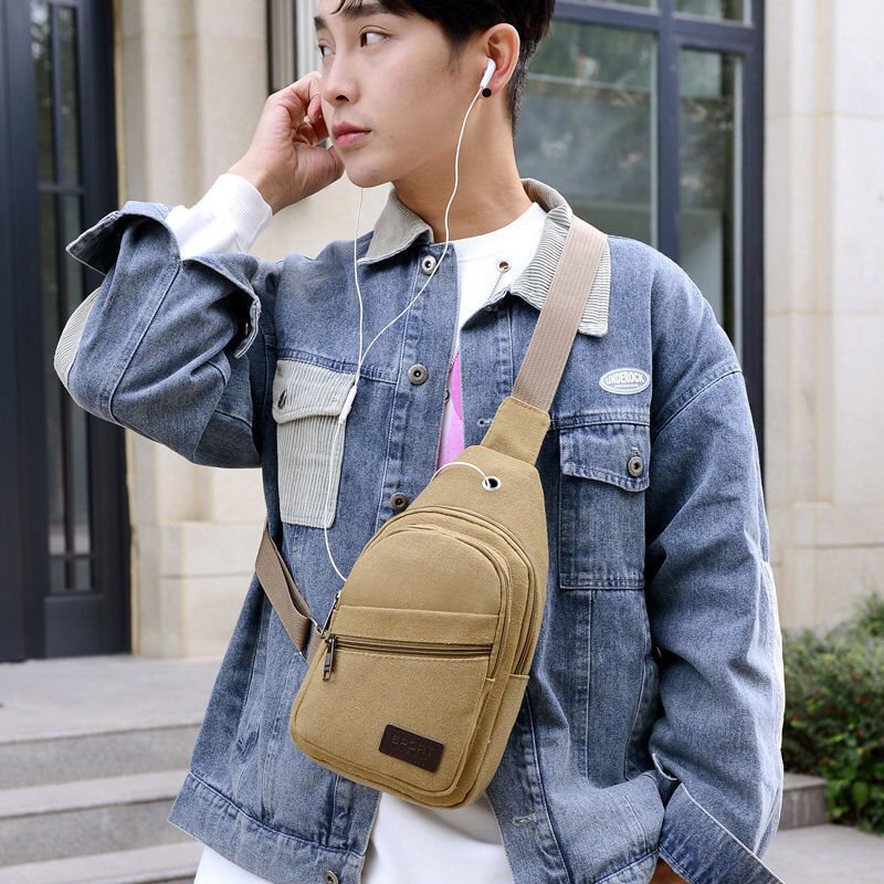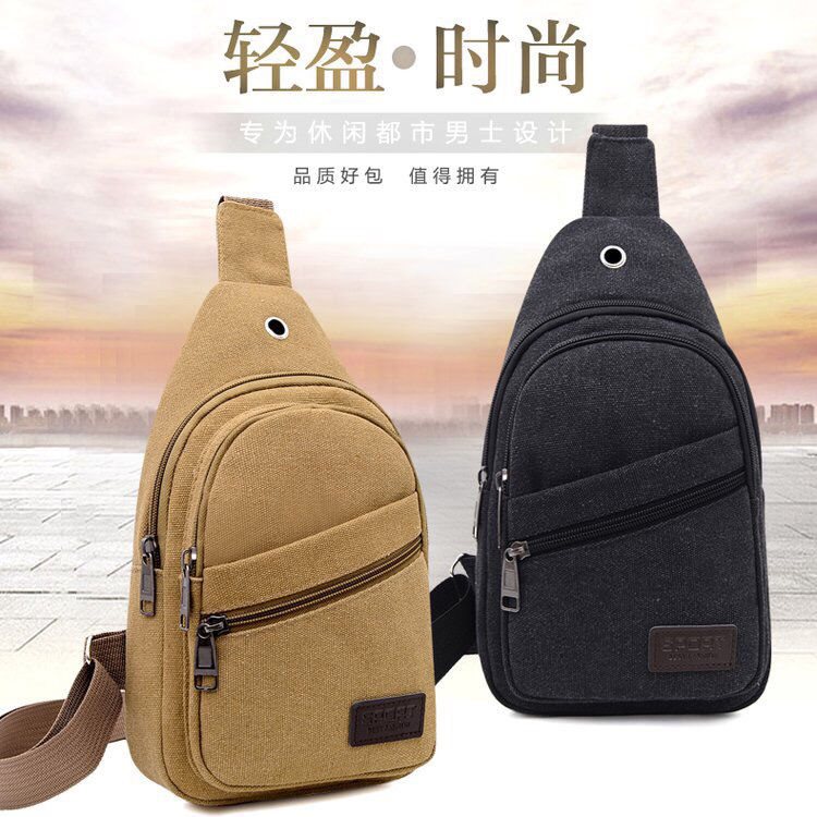 Canvas Chest Bag New Men's Chest Bag Crossbody Bag Men's Chest Small Backpack Casual Large Capacity Multi-Pocket Travel Trendy