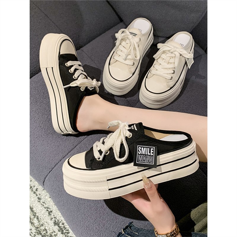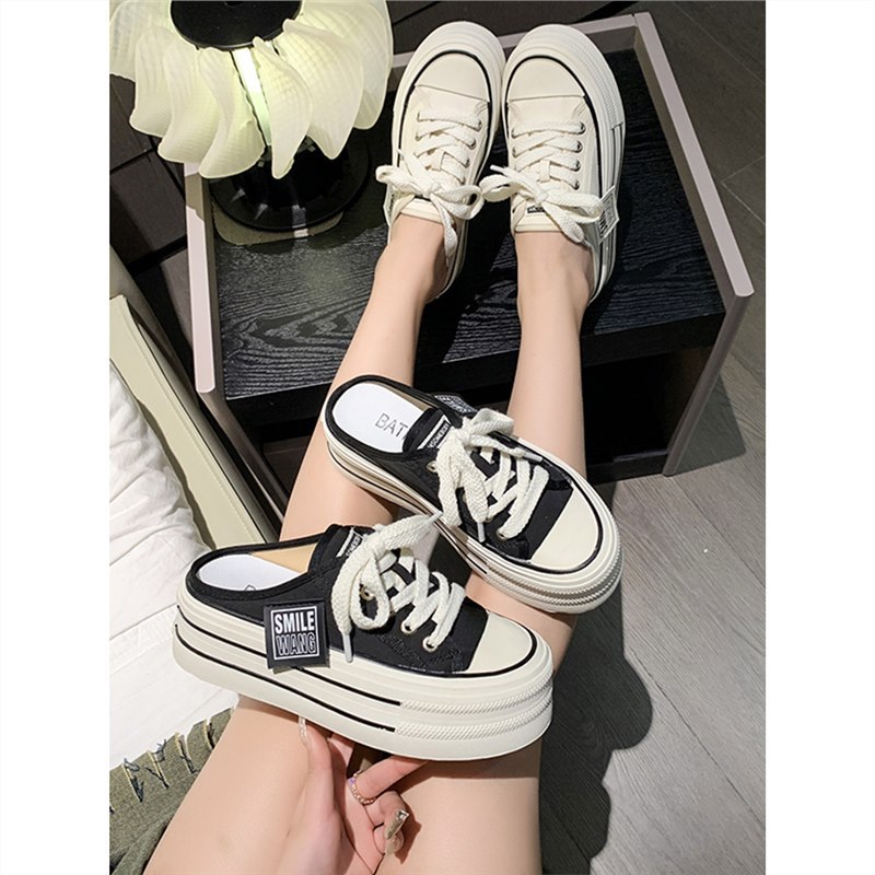 | nameOriginal | Canvas Half Slippers Women's Summer Outer Wear 2024 New Internet Celebrity Hot High-end Thick Bottom Heel-free Lazy Man |