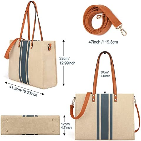 Canvas laptop tote bag for women, fits 15.6 inch laptop, ideal for work, travel and daily use.