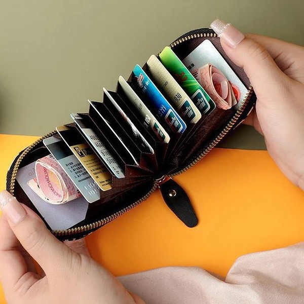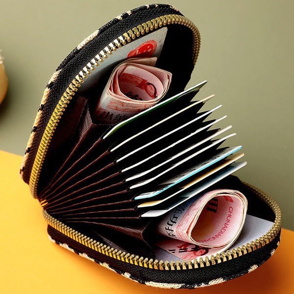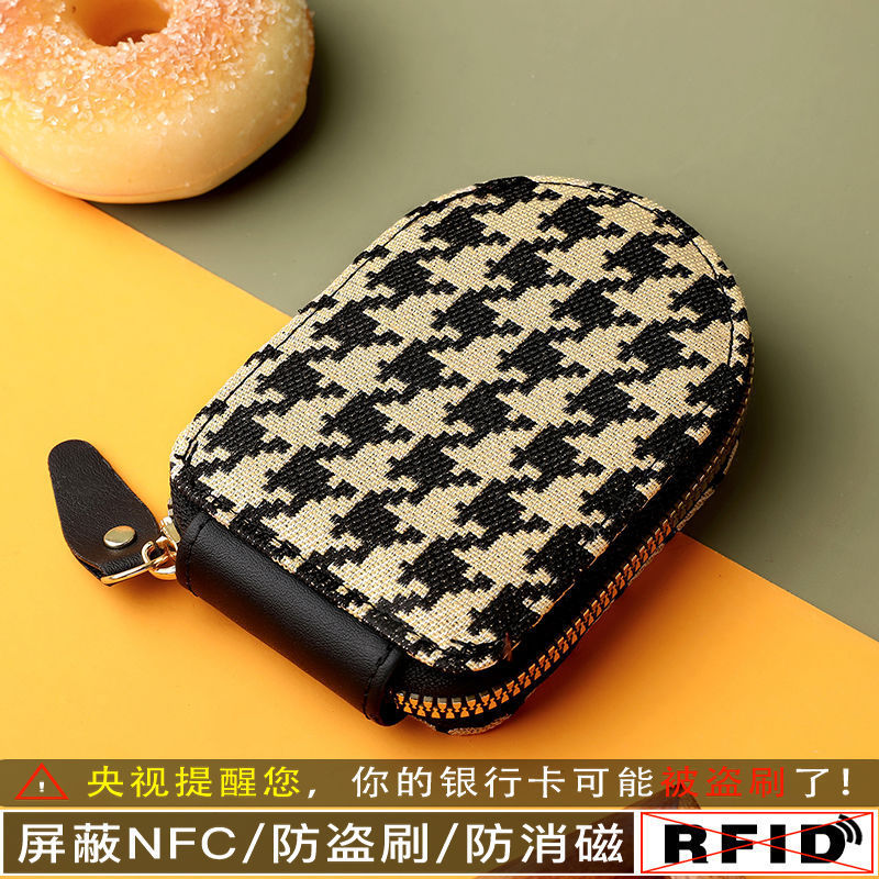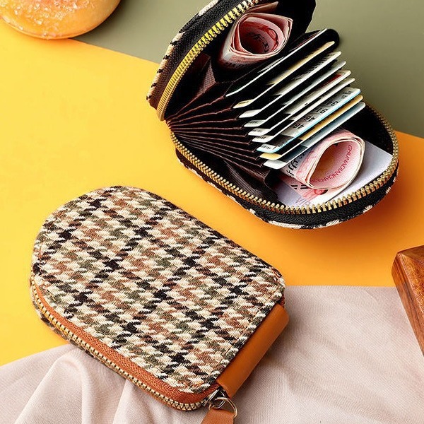 Canvas plaid ultra-thin appearance zipper small Thousand Birds cute card position exquisite women’s change card holder certificate New