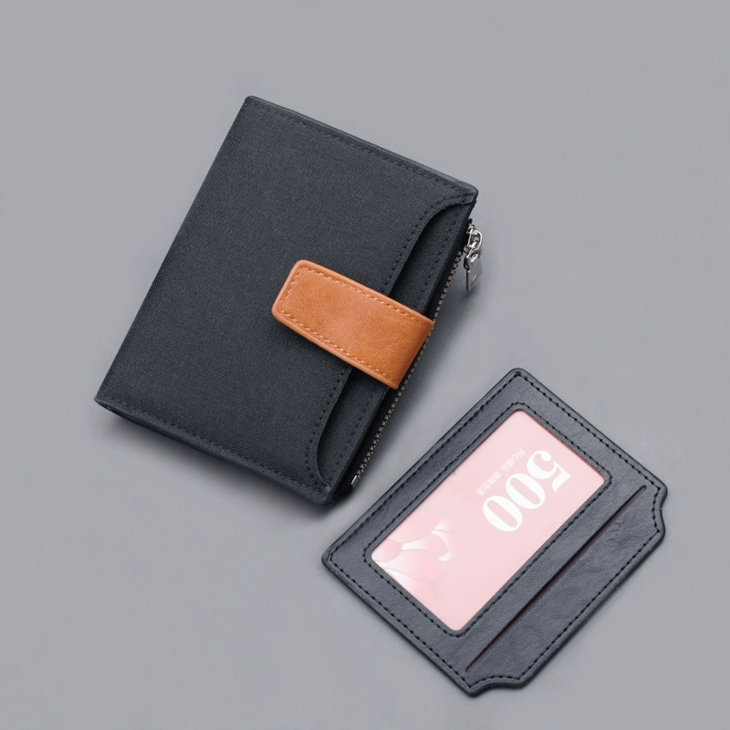 Canvas wallet men's short zippered multi-card buckle wallet vertical wallet can hold driver's license Oxford cloth bag
