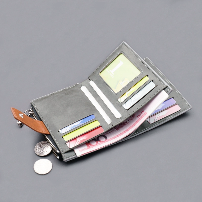 Canvas wallet men’s short zippered multi-card buckle wallet vertical wallet can hold driver’s license Oxford cloth bag