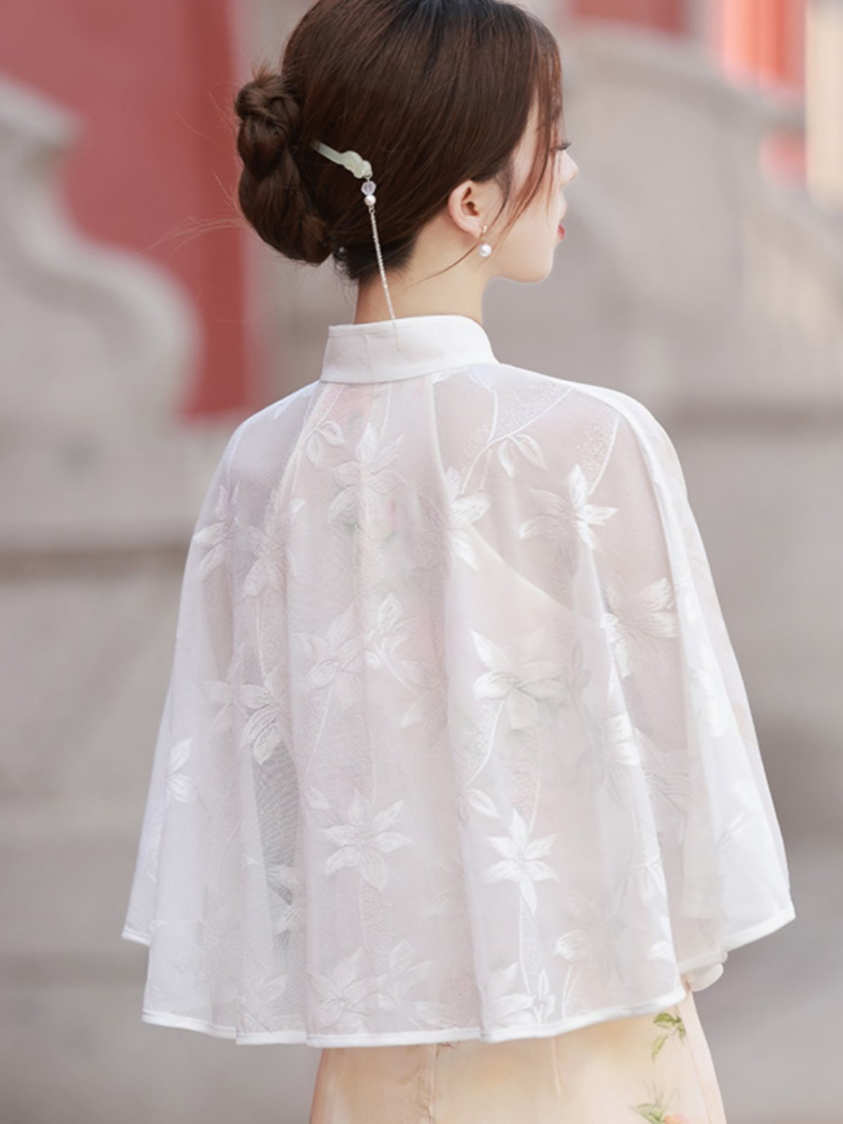 | nameOriginal | Cape Cloak Cloud Shoulder Chinese and Foreign Cardigan Spring and Autumn Western Style White Chiffon Shawl Cheongsam Lace National Style Retro Women |