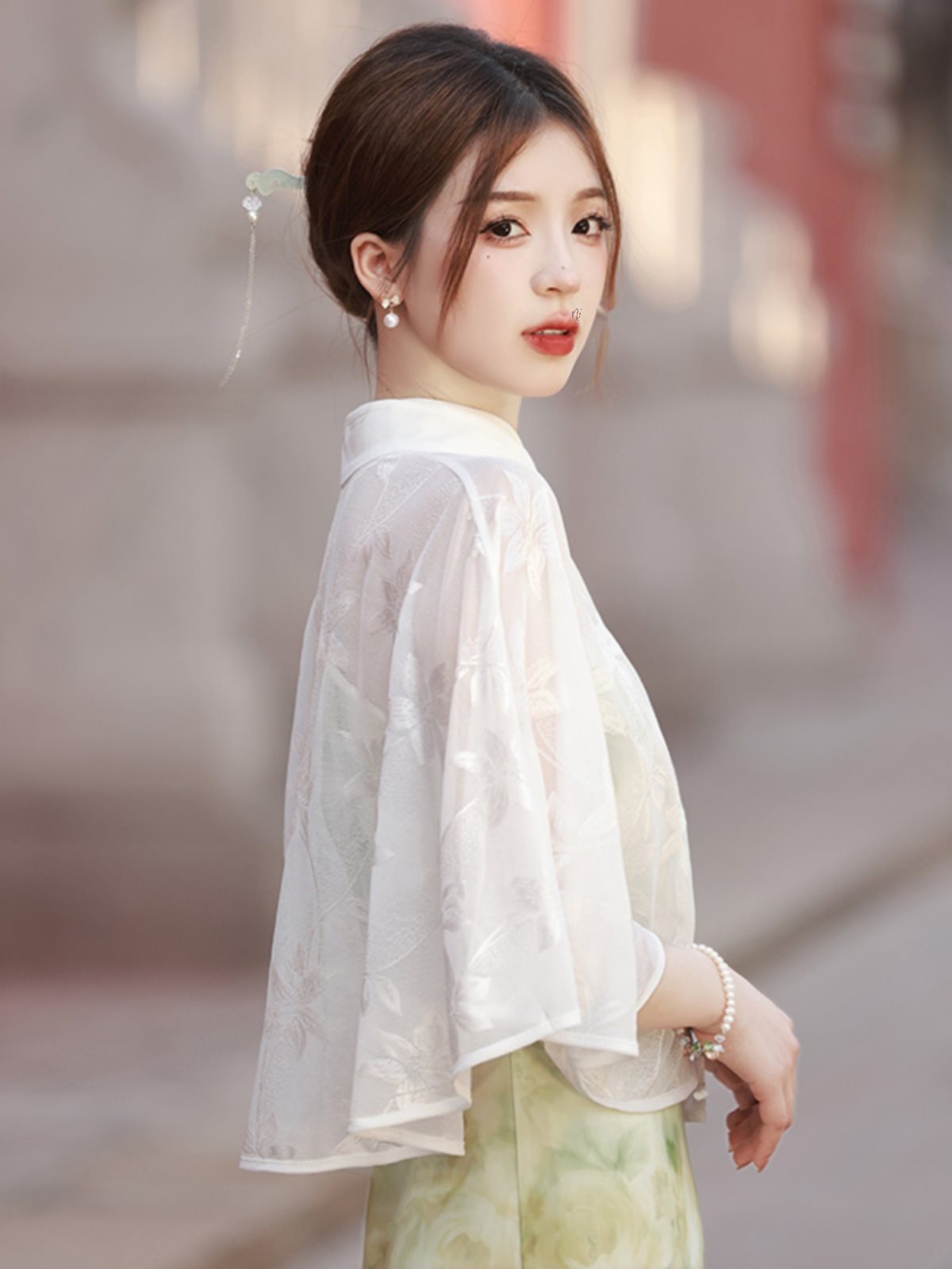 | nameOriginal | Cape Cloak Cloud Shoulder Chinese and Foreign Cardigan Spring and Autumn Western Style White Chiffon Shawl Cheongsam Lace National Style Retro Women |