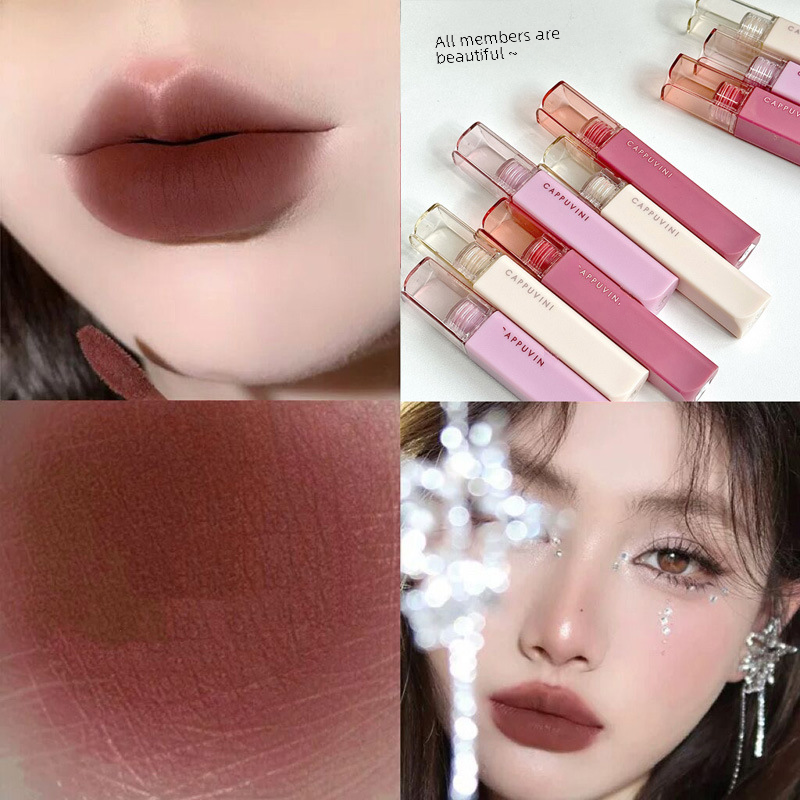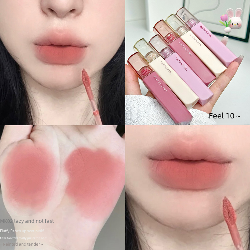 Cappuvini art cotton mist lip mud Summer Lip Glaze Matte Velvet Matte student cheap white lipstick
