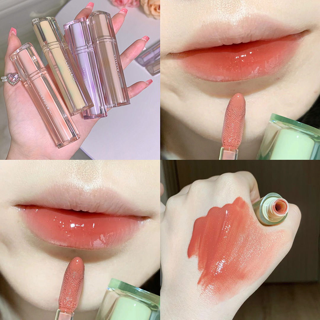 Cappuvini iced tea mirror lip glaze glossy lip gloss glass jelly lip triangle transparent tube Chinese goods lip gloss