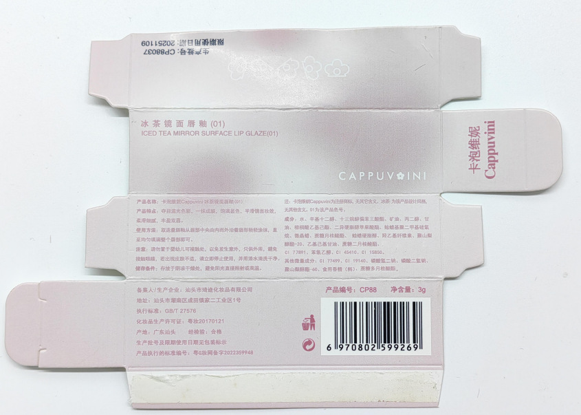 Cappuvini iced tea mirror lip glaze glossy lip gloss glass jelly lip triangle transparent tube Chinese goods lip gloss