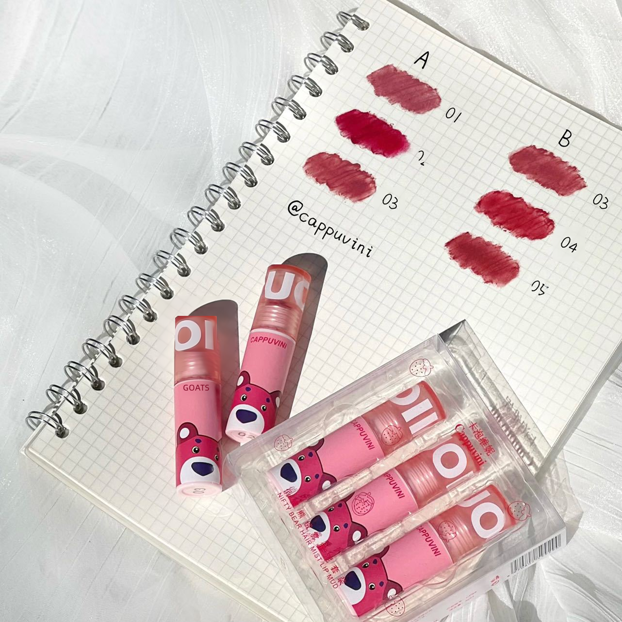 | nameOriginal | Cappuvini Three-Pack Set Pink Bear Lip Mud Matte Lip Glaze Velvet White Chinese Makeup Lip Gloss |
