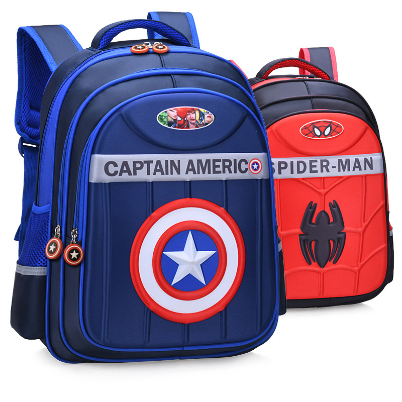 Captain America Schoolbag Primary School Male Spider-Man Backpack Rain Cover Grade 1-3-6 Three-dimensional Children's Schoolbag