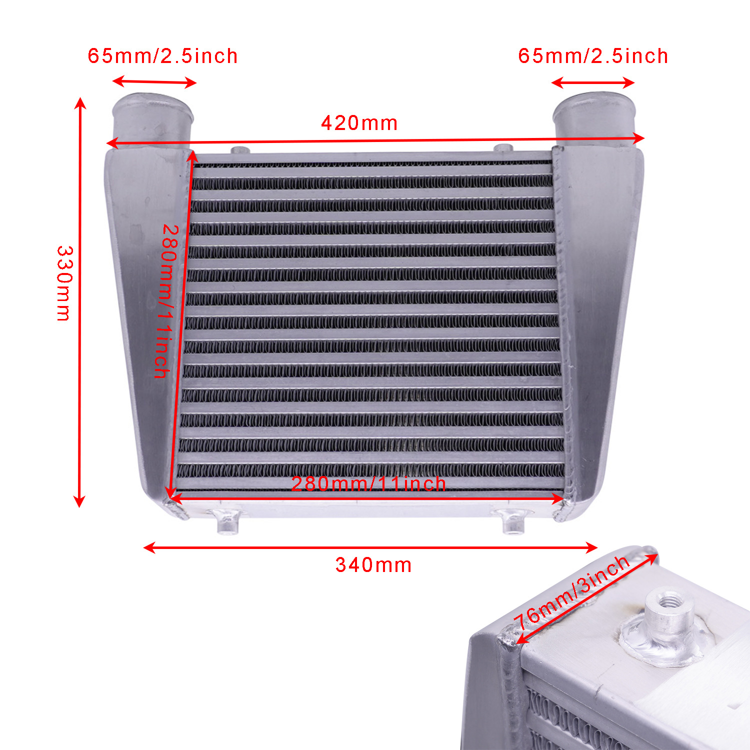 Car intercooler universal 280x280x76mm-65MM intake turbine radiator modified aluminum tube
