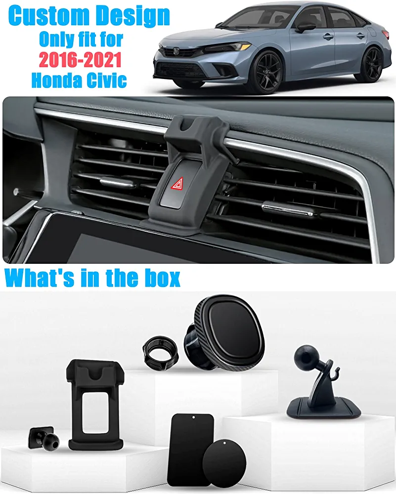 This magnetic car phone mount is specifically designed to fit Honda Civic models from 2016 to 2021, including LX, EX, EX-T, EX-L, Touring, LX-P, Si, Sport, Sport Touring, Type R, Type R Touring, and Type R Limited Edition. It is important to note that this product is not compatible with Honda Civic 2015.