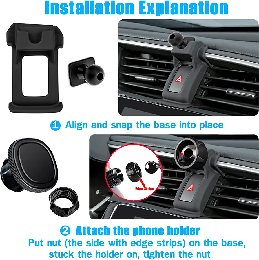 Installation is easy and requires no tools. The holder is perfectly cut to avoid blocking any buttons or dials and can be adjusted to provide a good view while driving. This product will make your driving experience safer and more comfortable.