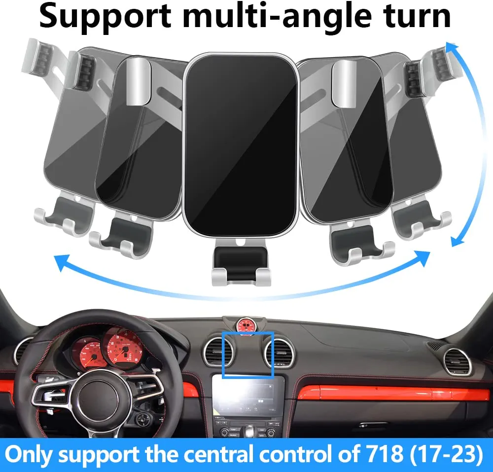 Looking for a phone mount that won’t obstruct your view while driving? Check out the LUNQIN phone mount designed specifically for the 2017-2023 Porsche 718 Boxster Cayman. This mount is fixed onto the air vent, ensuring stability and a clear view of the road ahead.