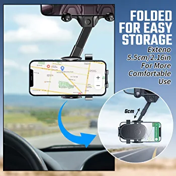 The new version design of the mount makes it easier, sturdier, and more stable to use. It features a 360° rotatable rearview mirror phone holder that can be adjusted to any angle. The mount can be easily locked and released with one hand, thanks to its one-hand operation and one-touch release button.