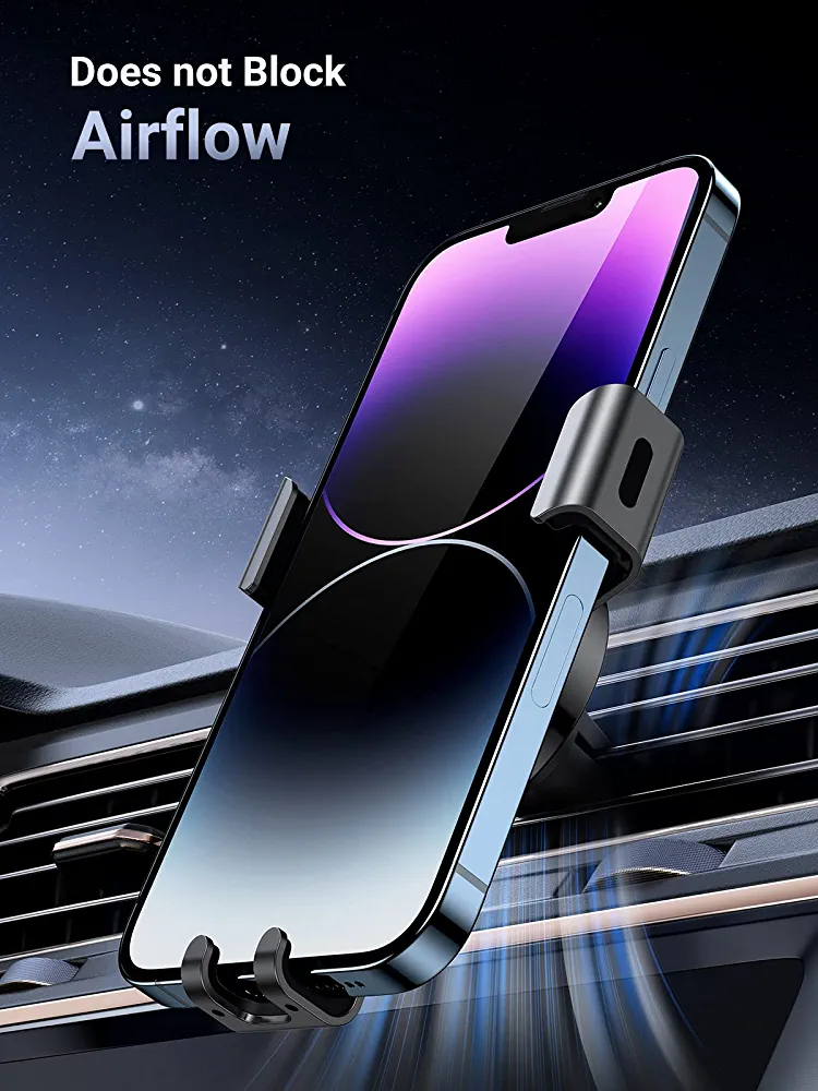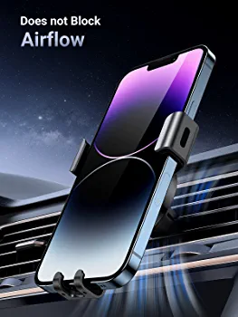 With gravity linkage design, this air vent car phone mount can form a stable triangle structure, so as to hold your phone securely even on bumpy roads. Designed with soft silicone pads, this air vent car phone holder stand can securely hold your phone and protect it from scratches.