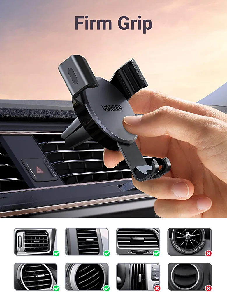 With this air vent car mobile holder, you can take into account the road conditions while viewing the navigation, without worrying about the problem of blocked sight. UGREEN car mobile holder helps you drive safely.