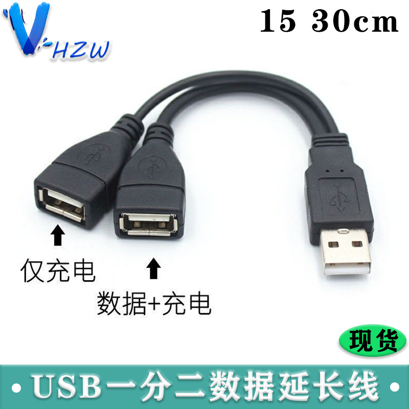 Car splitter uses one-two USB one-to-two female adapter cable, one male and two female charging data extension cable