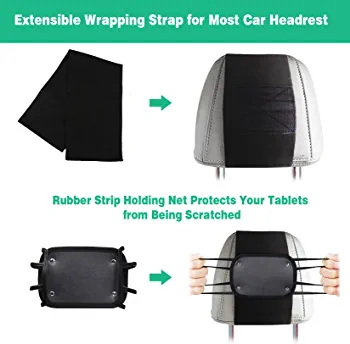 We stand behind our product and offer a 60-day no reason money-back guarantee and a 24-month warranty. If you have any issues, please contact us through Amazon Station Message, and we will respond within 24 hours. The original package includes one Car Headrest Strap and one Silicone Holding Net. Choose the Car Tablet Mount Holder for a safer, more enjoyable car trip with your kids.