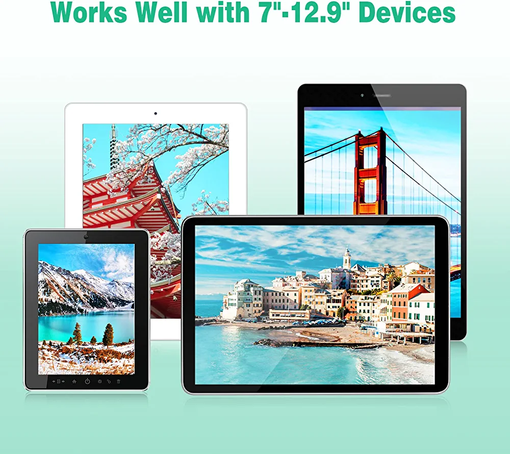 🚗𝐖𝐎𝐑𝐊 𝐖𝐈𝐓𝐇 𝟕-𝟏𝟐.𝟗 𝐈𝐍𝐂𝐇 𝐓𝐀𝐁𝐋𝐄𝐓𝐒🚗 This universal tablet headrest mount uses a new upgraded high elastic silicone holding net, so the supported tablets size has been expanded from 7-10.5 inches up to 7-12.9 inches, it can hold largers size tablets than before. Flexiable car headrest straps is suitable for most different car headrests in styles or sizes. The rubber holding net and nylon headrest strap is extremely soft so it can protect your tablet from being scratched