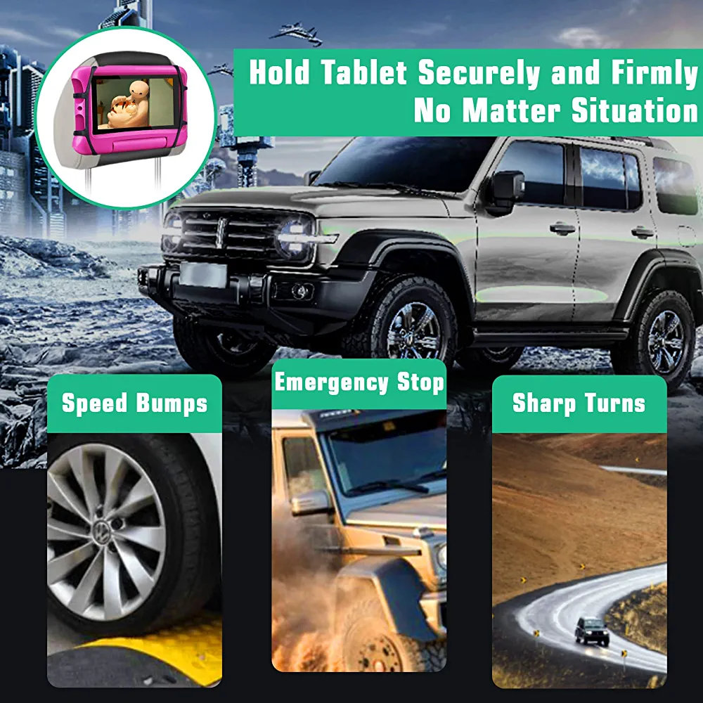 🚗𝐂𝐀𝐑 𝐓𝐀𝐁𝐋𝐄𝐓 𝐇𝐎𝐋𝐃𝐄𝐑 𝐌𝐎𝐔𝐍𝐓🚗 This tablet mount holder can be installed in car backseat and hold your kids tablets tightly. Not only can keep your kids entertained in the whole long boring driving trip but also can avoid neck fatigue and arm injury of holding a tablet for long time. No need to worry about your child will throw a tantrum or cry anymore in road travel so you can focus on driving for a safer journey