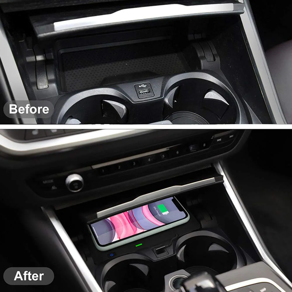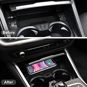 The package includes one charger, one USB data cable, one instruction manual, and one box. Upgrade your driving experience with our 2021 wireless charger for BMW 3 Series.