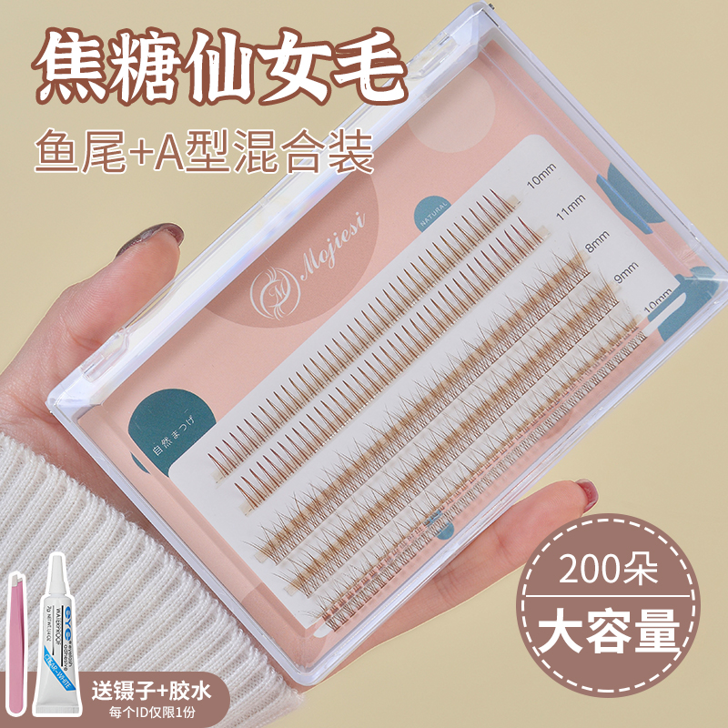 | nameOriginal | Caramel brown A-type fishtail mixed fairy eyelashes single cluster grafted fairy hair life makeup self-adhesive false eyelashes |