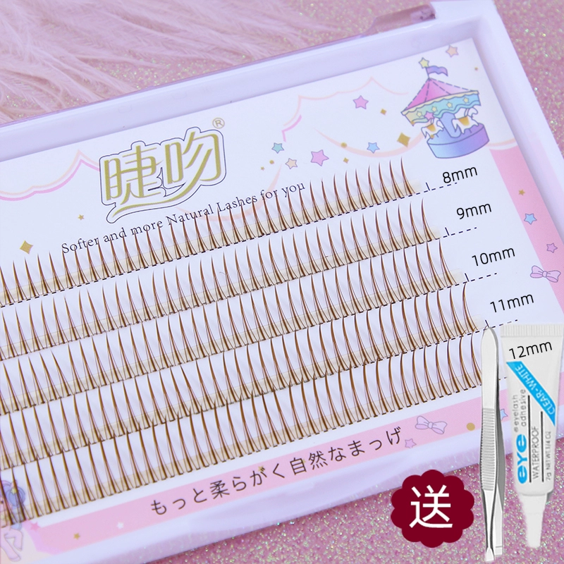 | nameOriginal | Caramel brown A type + fishtail mixed false eyelashes for women, natural and soft, single cluster fairy hair, self-grafted C-shaped |