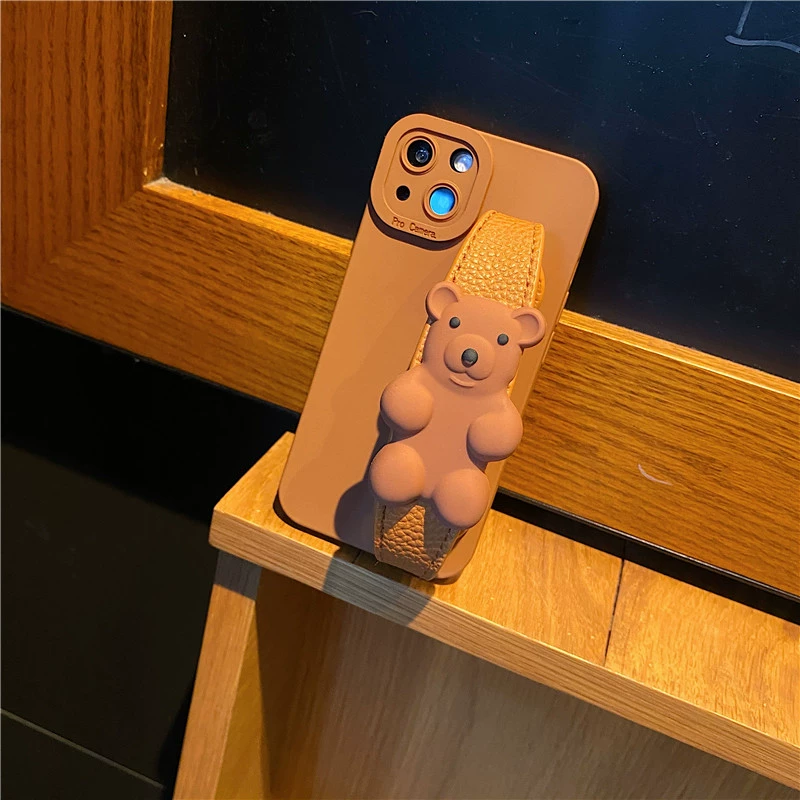 Caramel color cute bear wristband apple 15promax mobile phone case iphone14 soft 11 anti-fall bracket 16 protective cover 12 cartoon 13mini silicone XR soft shell xsmax female 7/8plus