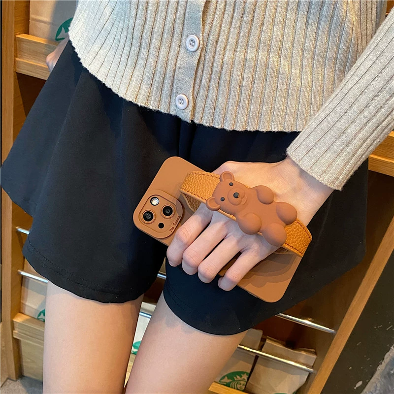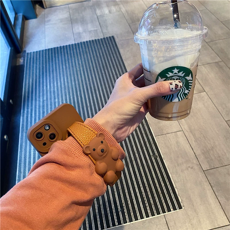 Caramel color cute bear wristband apple 15promax mobile phone case iphone14 soft 11 anti-fall bracket 16 protective cover 12 cartoon 13mini silicone XR soft shell xsmax female 7/8plus