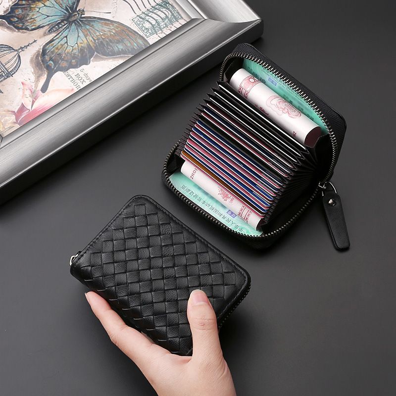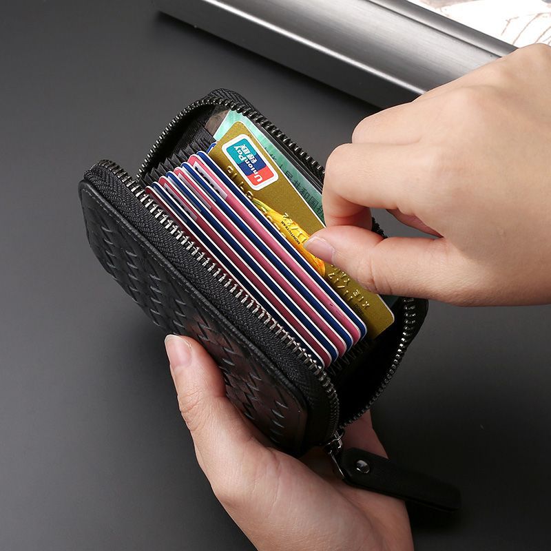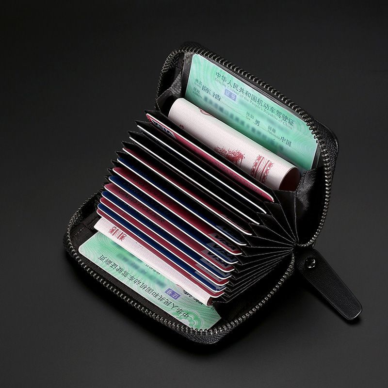 Card Bag Men’s Real Soft Leather Anti-degaussing Multi-card Card Bag Anti-theft Brush Multi-functional Bank Card Bag ID Bag