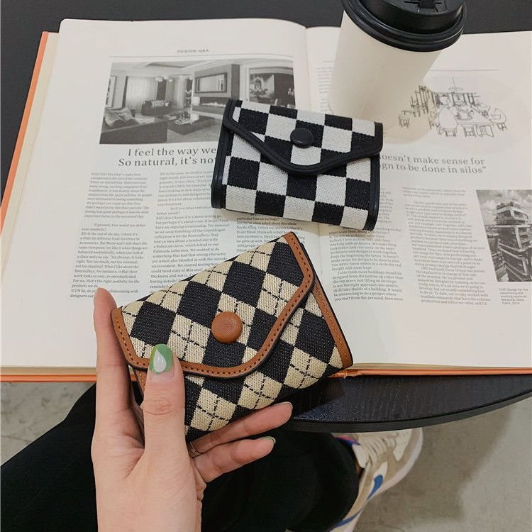Card Bag Women’s Short High-end Sense Niche Card Bag Women’s Small and Exquisite High-end Coin Purse Rhombic Multi-Card Ins