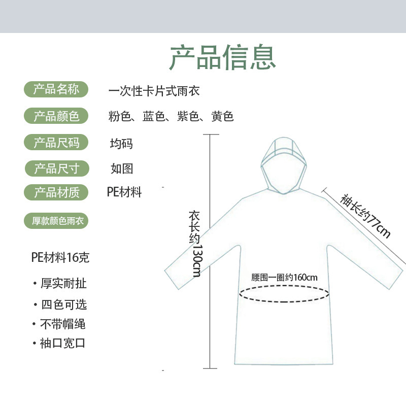 Card Raincoat Disposable Portable Body Adult Average Size Poncho Playground Travel One Piece Batch Origin Factory