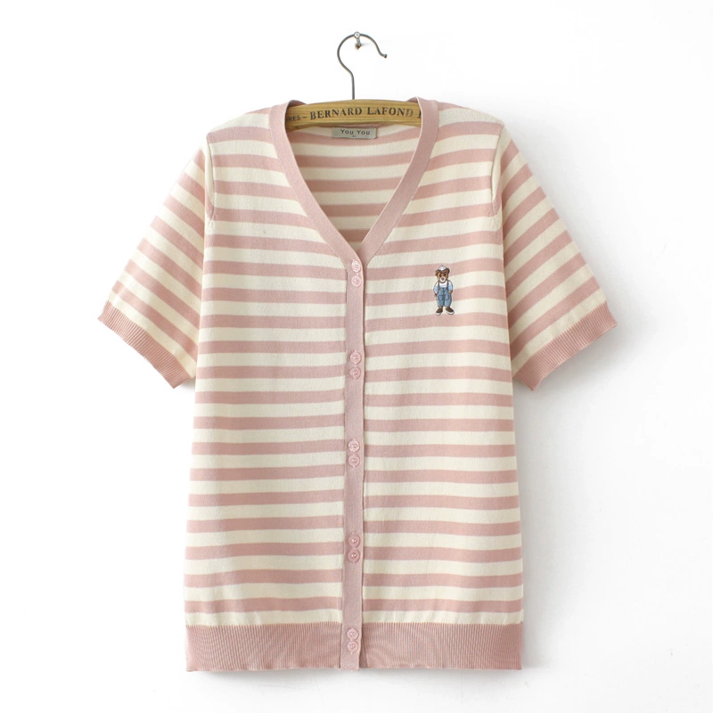 | nameOriginal | Cardigan fat mm bear embroidery large size casual short sleeve |