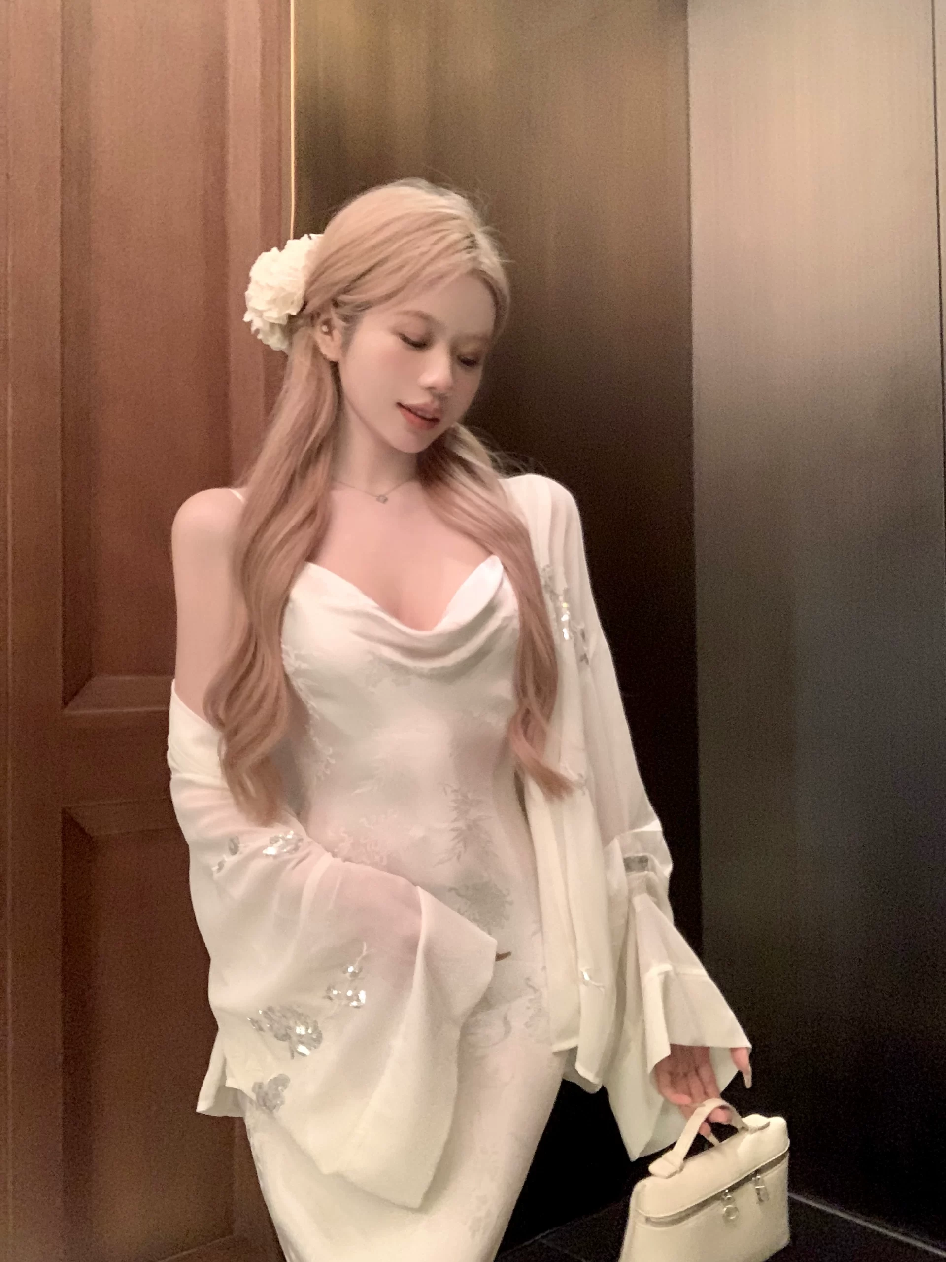 | nameOriginal | Cardigan jacquard suspender dress two-piece sequin set |