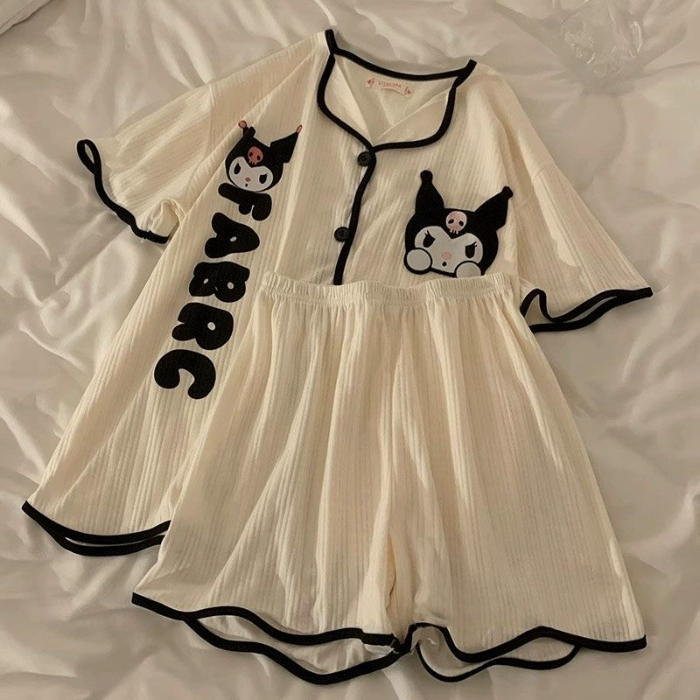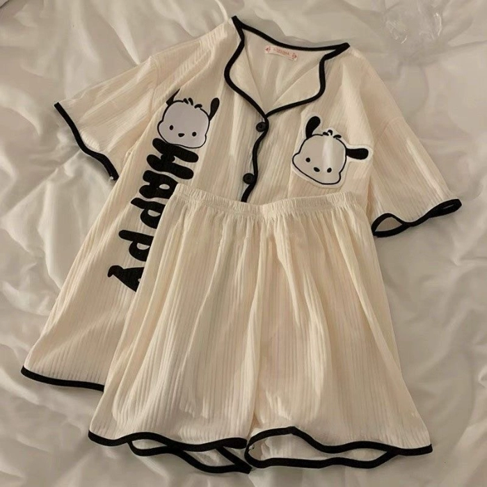 | nameOriginal | Cardigan pajamas for women summer short-sleeved pure cotton Internet celebrity style high-end cartoon student thin cute home wear set |