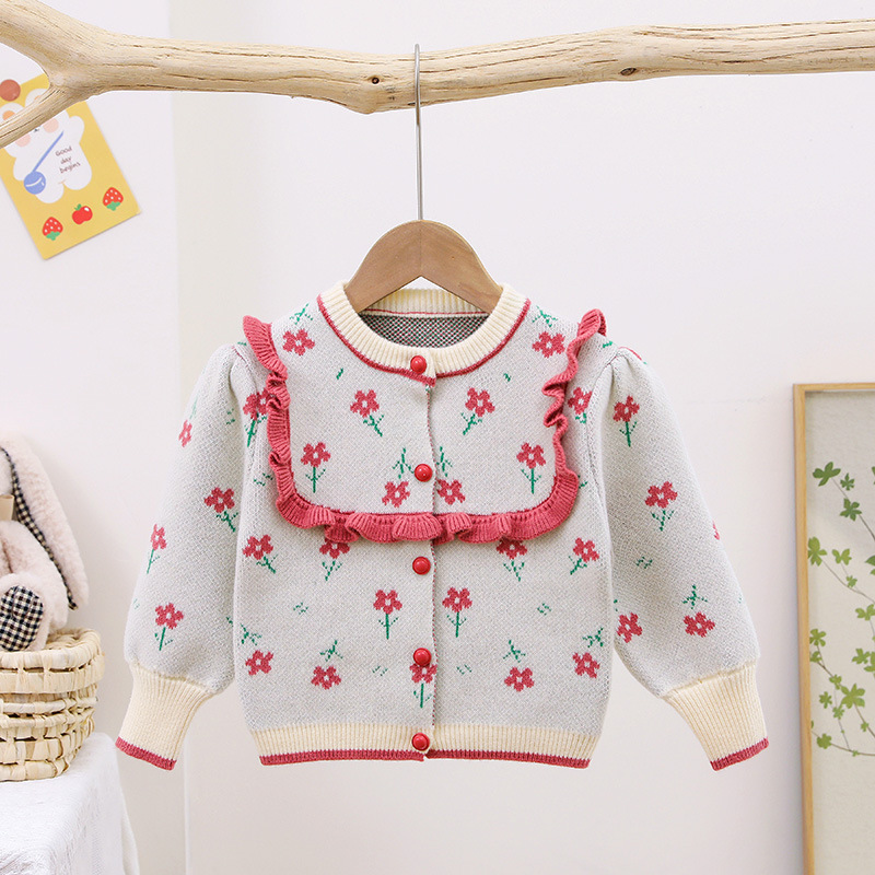 Cardigan sweater girls children small and medium-sized children’s coat sweet female treasure 2023 New Spring Autumn Winter thick wholesale