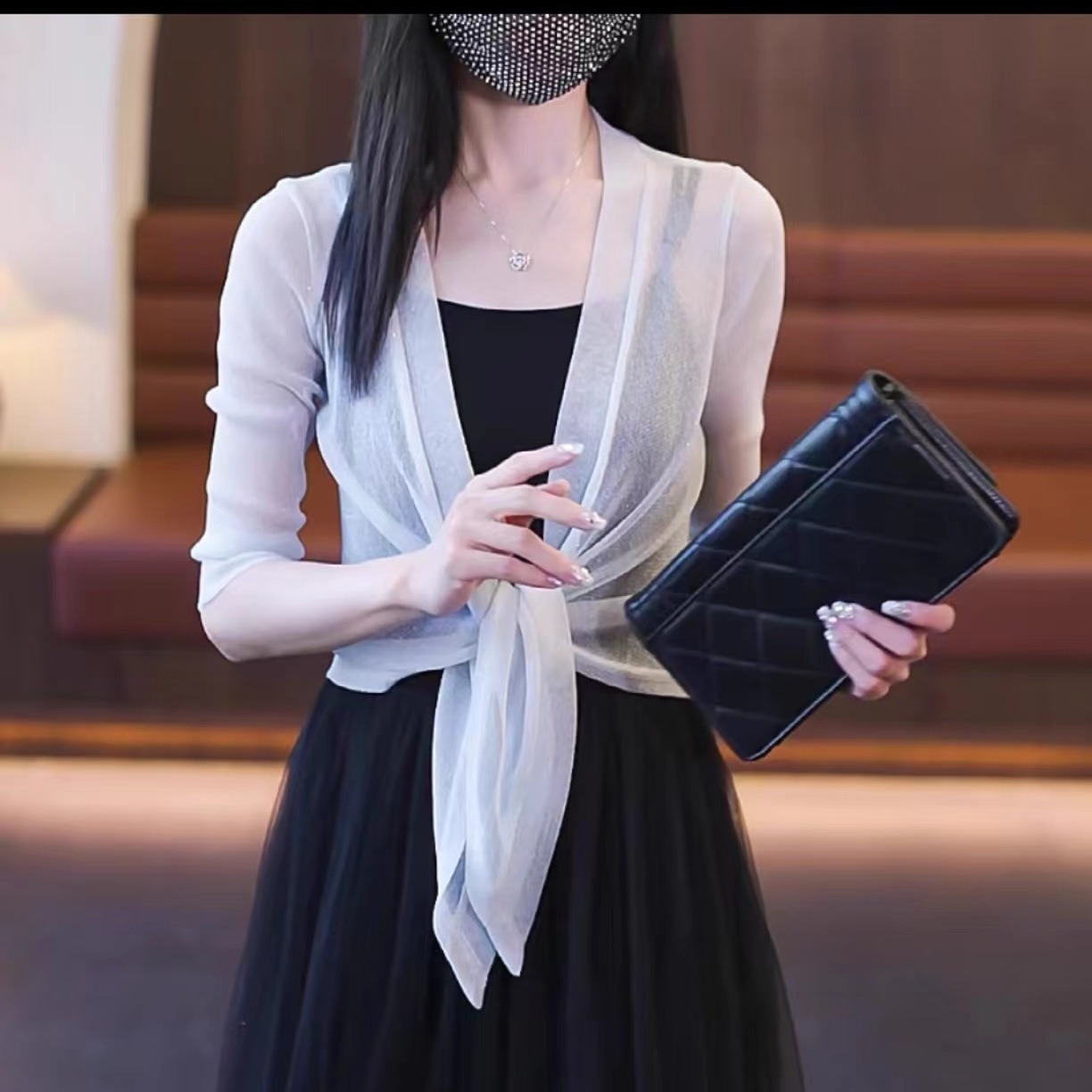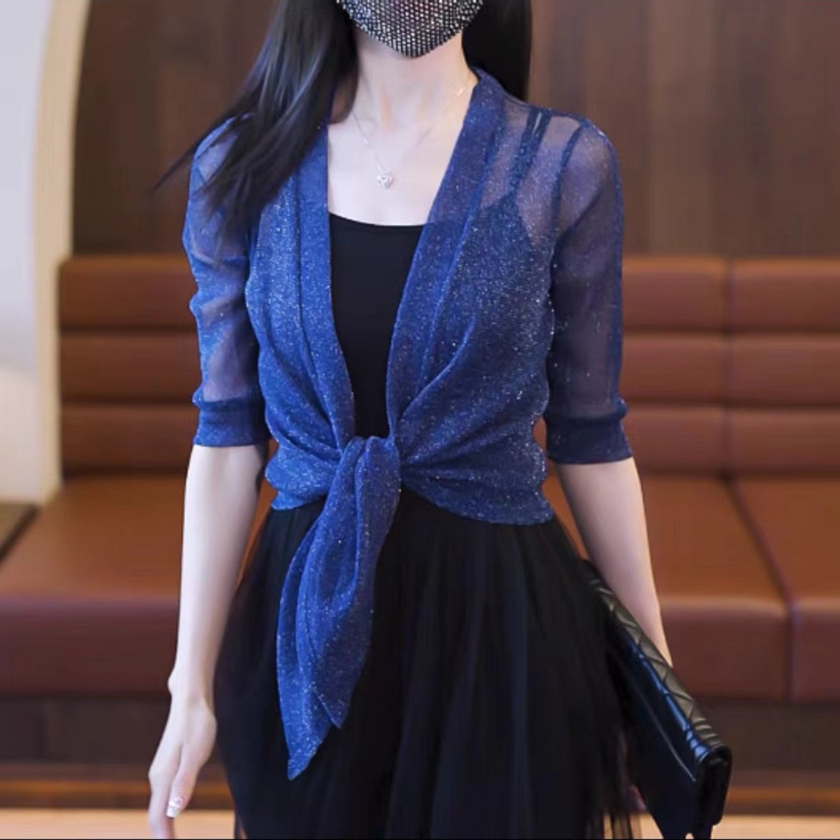 | nameOriginal | Cardigan Thin Women's Summer Skirt plus size Strap Short Small Cardigan Gold and Silver Coat Small Shawl Mesh Cross-border |