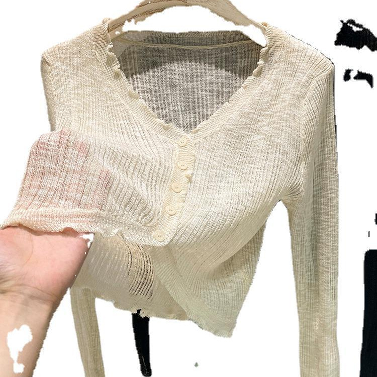 Cardigan Women's Thin Slub Knitted Top with Halter Skirt Air Conditioner Blouse Shawl Women's Outer Rim