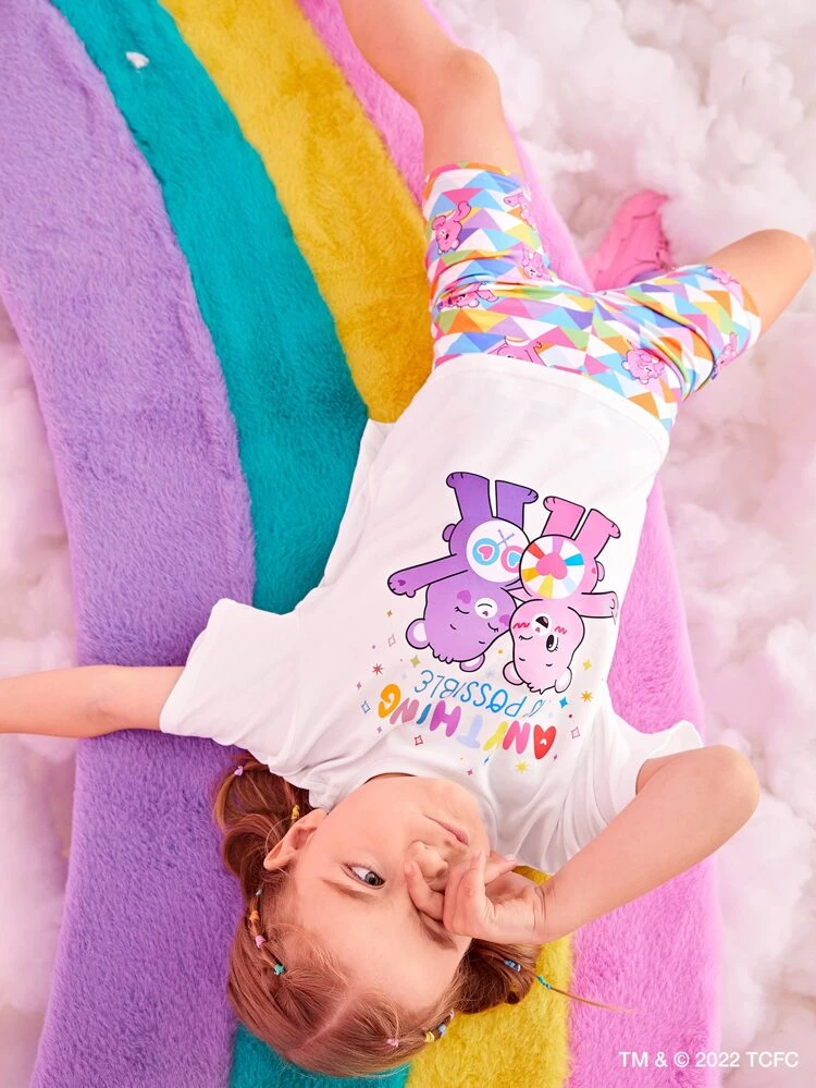 | nameOriginal | SHEIN X Care Bears Toddler Girls 1pc Cartoon & Slogan Graphic Drop Shoulder Tee & 1pc Biker Shorts  |