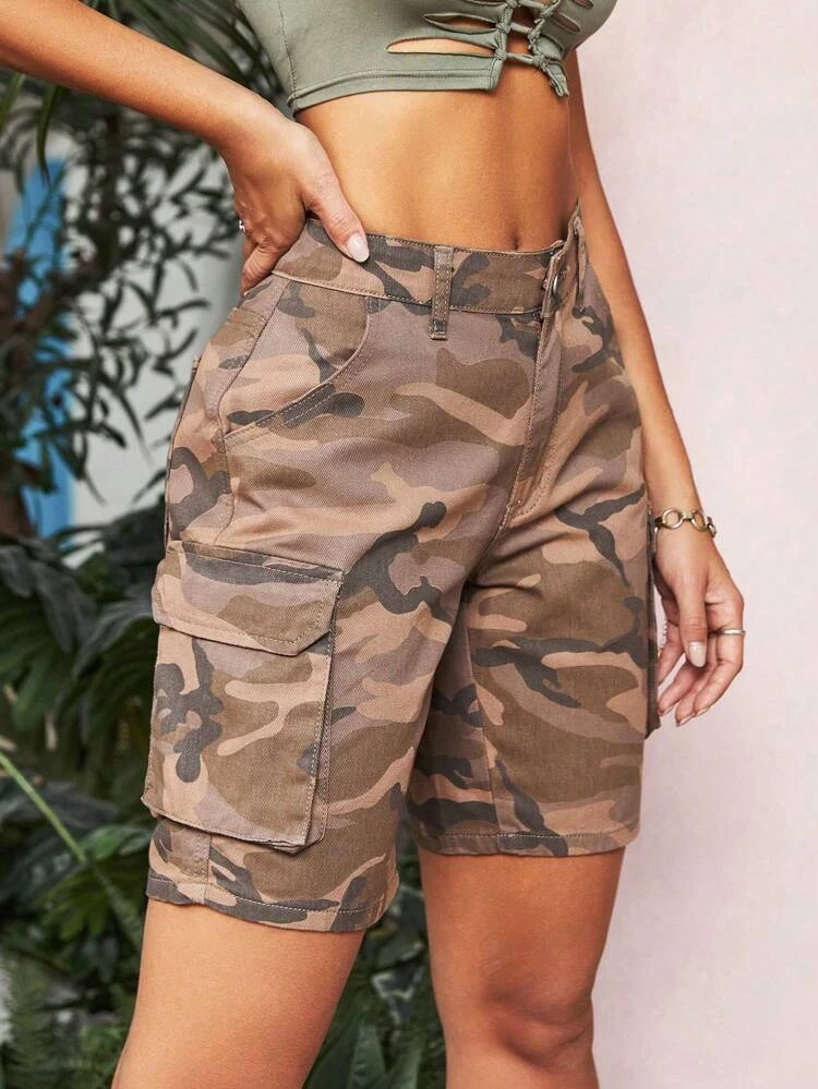 Introducing our Camo Print Flap Pocket Cargo Shorts, the perfect addition to your summer wardrobe. These shorts are designed with a trendy camo print that will make you stand out from the crowd. The flap pockets on the sides add a touch of style and functionality, allowing you to store your essentials while on the go. Made with high-quality materials, these cargo shorts are durable and comfortable to wear all day long. The adjustable waistband ensures a perfect fit for all body types. Whether you’re going on a hike, running errands, or just hanging out with friends, these Camo Print Flap Pocket Cargo Shorts are the perfect choice for any occasion. Order yours today and experience the ultimate combination of style and comfort!
