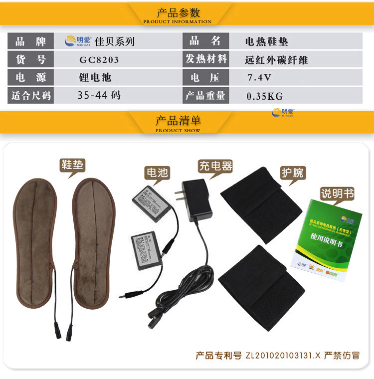 Caritas Jiabei rechargeable heating insole electric heating insole lithium battery warm 6-7 hours electric heating shoes